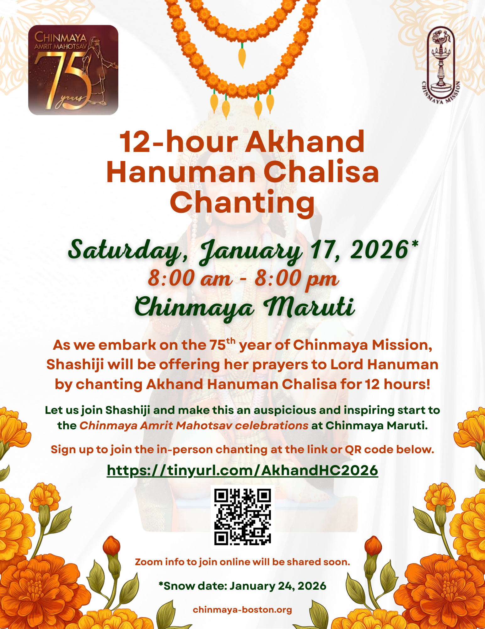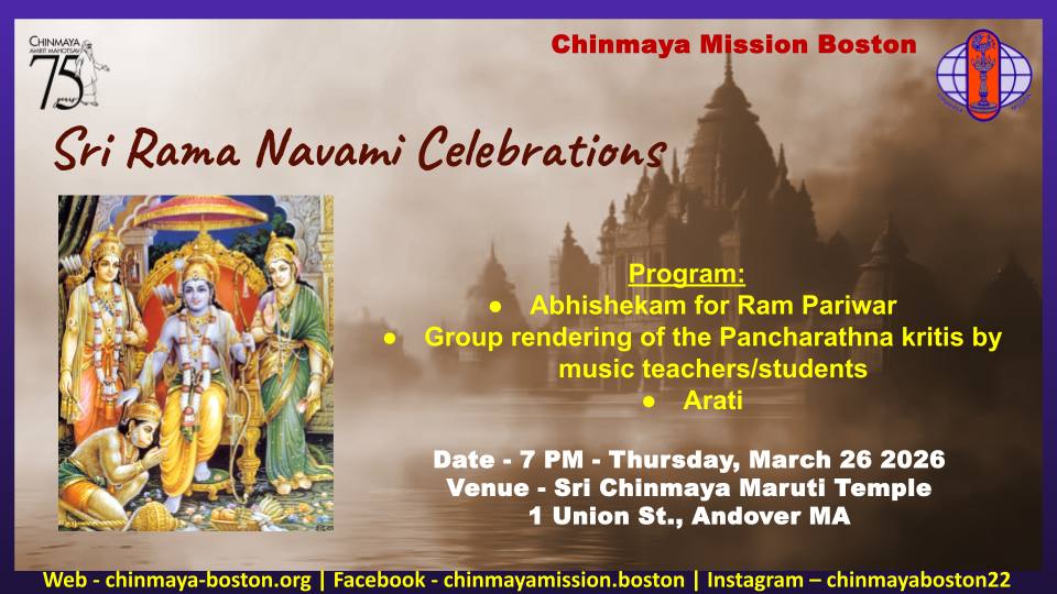 The Mission has continued mushrooming across the universe and stands today with over 400 centers worldwide.A MILESTONE Friday, June 13, 2003, marked a milestone in Chinmaya Mission Boston history with the inauguration of its new centre, “Sri Chinmaya Maruti Temple“.